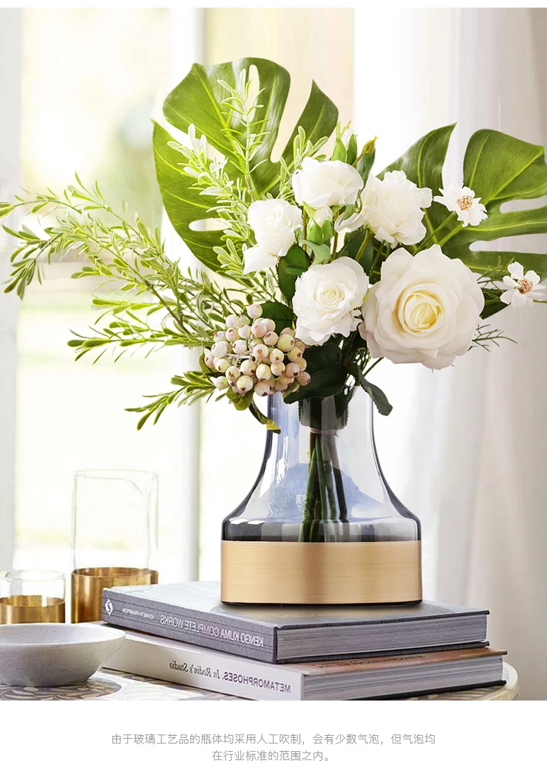 Modern Blue Gold Bottom Glass Vases Home Room Entrance Hydroponic Floral Decor Romantic Dining Table Flower Vase Home Decoration Vases Aliexpress