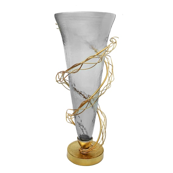17 Smoked Glass Vase With Gold Twig Design Etsy